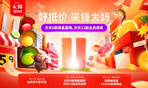 借助11周年慶,錢大媽推出“好抵價(jià)來錢大媽”會(huì)員活動(dòng)。通過社群、門店、精準(zhǔn)觸達(dá)等方式進(jìn)行多渠道宣導(dǎo)推送。自3月27日起,錢大媽周年慶預(yù)熱開搶,萬券齊發(fā)享不停;4月1日至28日,錢大媽天天6款限量直降,天天12款會(huì)員尊享。