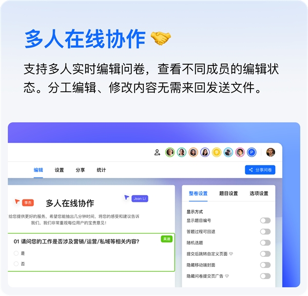 當下如果需要做一份問卷調(diào)研、或進行大范圍的信息統(tǒng)計,不少人下意識都會打開一款在線問卷工具進行制作。若問卷需要其他人一同制作或?qū)徍藘?nèi)容,則需要由一人完成基本編輯后,再發(fā)給他人繼續(xù)操作,協(xié)作效率不高,且涉及大量溝通。