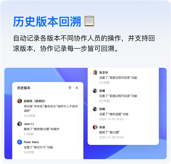 “協(xié)同編輯”的推出,在騰訊問卷已有的專業(yè)問卷編輯功能,進一步實現(xiàn)多人在線協(xié)同,提升多方協(xié)作編輯、內(nèi)容審核的工作效率,同時也將為在線考試、360評估、滿意度調(diào)查等垂直應(yīng)用場景賦能,為數(shù)字調(diào)研工作提供更多可能性與能力保障。