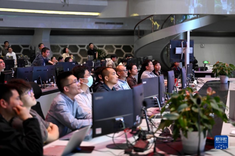 這是實驗成功后的全超導托卡馬克核聚變實驗裝置(EAST)控制大廳(4月12日攝)。新華社記者 黃博涵 攝