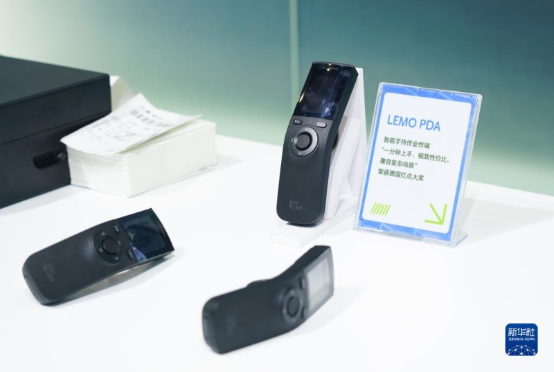 這是菜鳥(niǎo)展臺(tái)展出的國(guó)產(chǎn)智能手持作業(yè)終端,它可以助力提高物流分揀效率(4月13日攝)。
