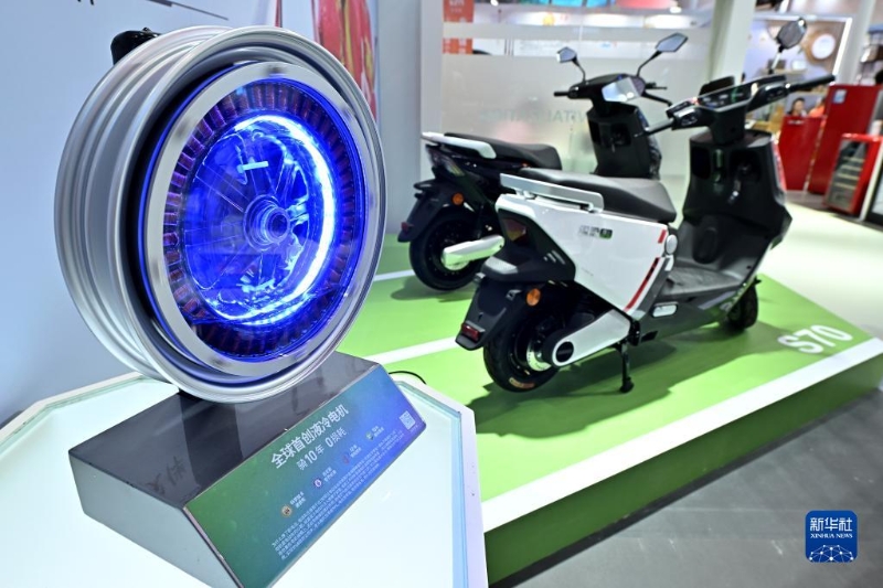這是浙江展臺(tái)展示的綠源電動(dòng)車(chē)液冷機(jī)芯,它可以提高電機(jī)效率、增加電動(dòng)車(chē)?yán)m(xù)航(4月13日攝)。
