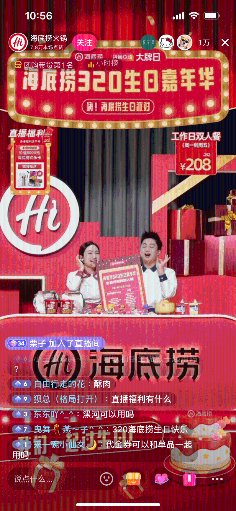 海底撈生日嘉年華抖音直播破億,成首個正餐直播破億品牌