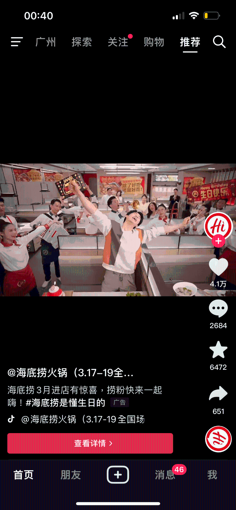 “跟所有的煩惱說拜拜,跟所有的快樂說嗨嗨”,海底撈朗朗上口的生日快樂歌,成為在海底撈過生日必不可少的儀式感所在,受到眾多年輕用戶的喜愛和分享。海底撈一年一度生日月,作為品牌的年度大事件,與「抖音心動大牌日」為品牌在抖音打造專屬的“BIG DAY”不謀而合?;谙M趨勢把握和用戶心理洞察,進一步深化在海底撈過生日的場景認知,海底撈再次選擇將抖音平臺作為今年生日月的重要陣地,通過策劃“線上+線下”的創(chuàng)意互動玩法,上線生日月專屬套餐,打造系列品牌官方直播等經(jīng)營動作,全面營造生日嘉年華氛圍,進一步加深用戶對于海底撈的品牌認知。