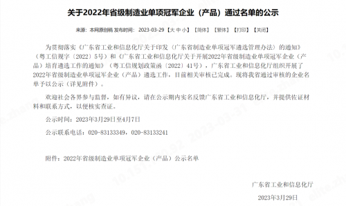廣東省制造業(yè)單項冠軍是指長期專注于制造業(yè)細(xì)分行業(yè)產(chǎn)品研發(fā)和生產(chǎn),具備較好的創(chuàng)新基礎(chǔ)條件和較強的技術(shù)創(chuàng)新能力,生產(chǎn)技術(shù)或工藝達(dá)到國際領(lǐng) 先水平,單項產(chǎn)品市場占有率位居全球或國內(nèi)行業(yè)前列的制造業(yè)企業(yè)或工業(yè)產(chǎn)品。培育制造業(yè)單項冠軍,是推動制造業(yè)高質(zhì)量發(fā)展的重要內(nèi)容之一。其旨在引導(dǎo)制造業(yè)企業(yè)專注創(chuàng)新和產(chǎn)品質(zhì)量提升,推動產(chǎn)業(yè)向中高端發(fā)展,提升制造業(yè)國際競爭力,并帶動中國制造走向世界。