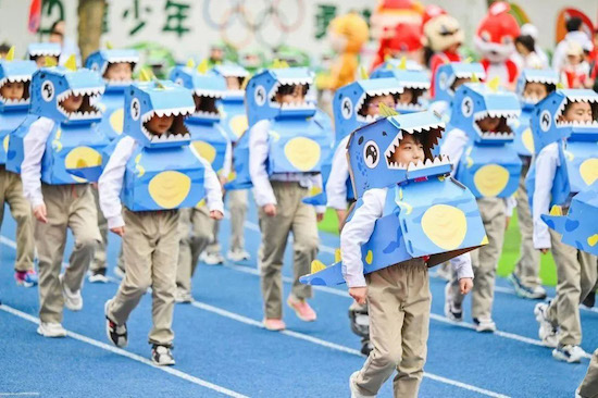 緊隨其后的是各班級方陣,各具特色的“班級快閃”,展現(xiàn)了各班級昂揚的精神風(fēng)貌,以及二小少年的蓬勃朝氣!