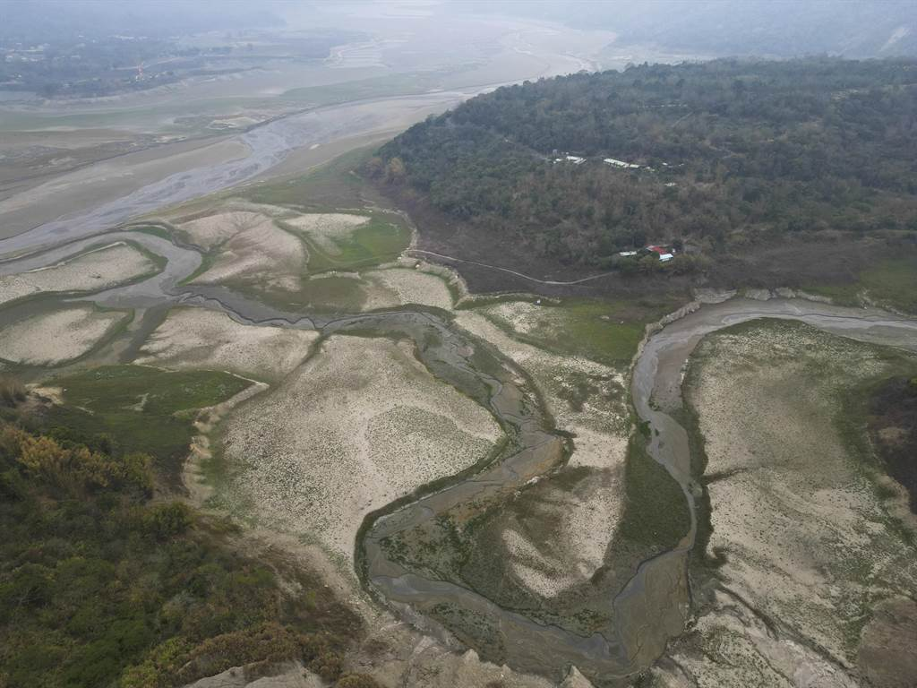 南化水庫還有27%蓄水量,但也出現(xiàn)數(shù)個(gè)小島裸露在水面上。(黃子明攝)
