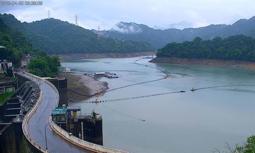 20日鋒面帶來(lái)降雨,石門水庫(kù)水位持續(xù)緩慢上升中。(翻攝石門水庫(kù)實(shí)時(shí)影像)