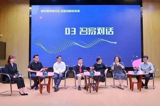 “名家對話”,大咖云集。蘇州大學教育學院教授李利女士,翰林家長中國科學院工程博士尹成科先生、澳大利亞蒙納士大學博士代百乾博士、蘇州大學李卓卓博士、劉釗博士共話“跨科跨界跨文化,創(chuàng)智創(chuàng)新創(chuàng)未來”。嘉賓們侃侃而談,闡述各自對5G賦能下“科學+”特色課程建設(shè)的理解,從不同角度暢談了自己對于創(chuàng)新型人才培養(yǎng)的觀點。作為學生代表出席本次“對話”的張一同學自信陽光,落落大方地參與了討論,他期待著未來能以學生的身份和老師一起參與跨學科教學,成為課堂的組織者。