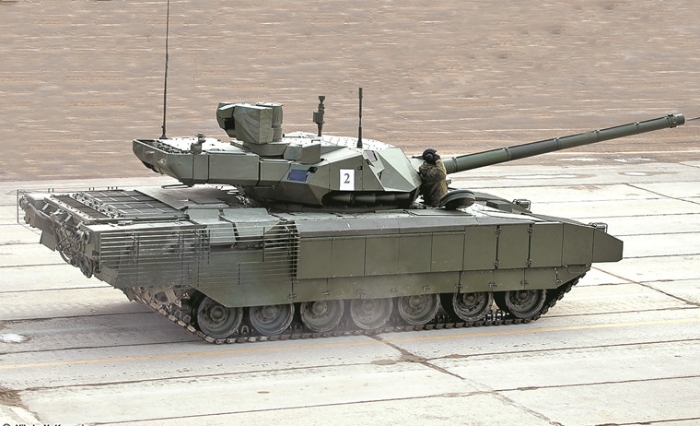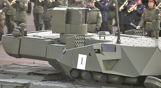 裝有“阿富汗石”主動(dòng)防護(hù)系統(tǒng)的俄羅斯T-14坦克。資料圖片
