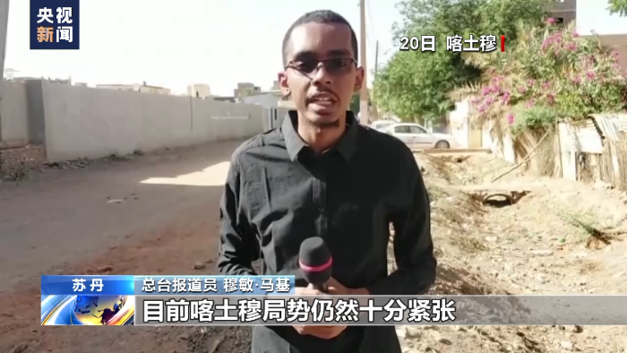 總臺(tái)報(bào)道員 穆敏·馬基:目前喀土穆局勢(shì)仍然十分緊張。但從昨天(19日)開(kāi)始,交火頻率有所降低。首都喀土穆大約每?jī)蓚€(gè)小時(shí)會(huì)發(fā)生一次交火。人們面臨非常嚴(yán)重的停水?dāng)嚯?。此時(shí)此刻,我仍能聽(tīng)到槍聲、空襲的聲音以及反空襲的炮彈聲。