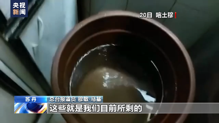 總臺(tái)報(bào)道員 穆敏·馬基:在喀土穆巴赫里地區(qū),所有的商店和市場(chǎng)都關(guān)門(mén)了。我存儲(chǔ)的食物還夠,但是水已經(jīng)不多了。喀土穆巴赫里正遭遇嚴(yán)重的缺水問(wèn)題。我們?cè)居兴耐八?,現(xiàn)在只有兩桶了。大家看,這一桶幾乎是滿(mǎn)的,再看看另一桶,差不多有(半桶)。 這些就是我們目前所剩的可供飲用的水了。因此我們能少用就少用,我們不洗澡。