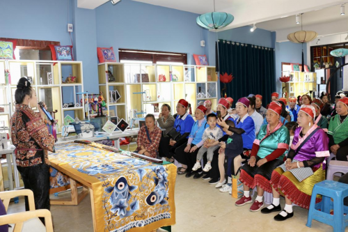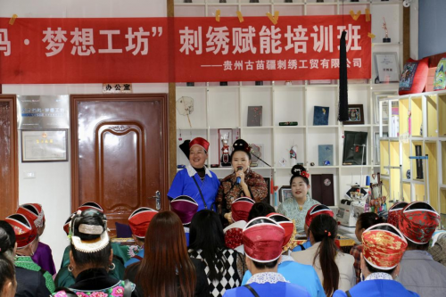 培訓(xùn)期間,劉英還帶領(lǐng)繡娘們參觀了貴州古苗疆刺繡工貿(mào)有限公司博物館、新產(chǎn)品展示館、現(xiàn)場(chǎng)直播間,講述苗繡與公司的發(fā)展歷程,以及苗繡的創(chuàng)新和市場(chǎng)需求,大大增進(jìn)繡娘們的民族自信、文化自信和公司發(fā)展信心,也讓她們相信,手中的針與線,將繡出生活的美好藍(lán)圖。
