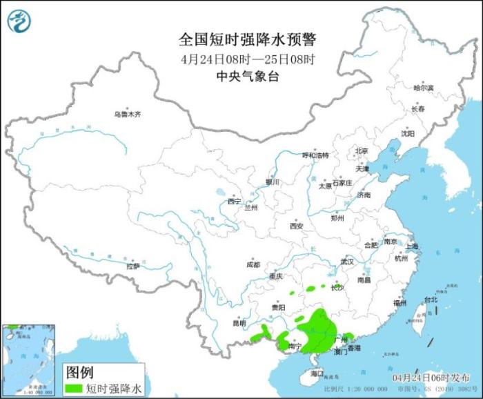 全國短時(shí)強(qiáng)降水預(yù)警(4月24日08時(shí)-25日08時(shí))