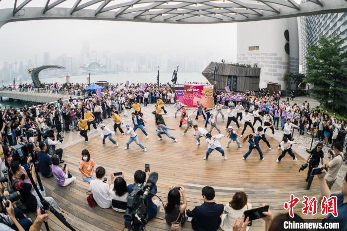 中新社香港4月23日電 香港尖沙咀星光大道23日舉行霹靂舞巡游暨巨星展覽“星光聲?影夢(mèng)”,以嶄新編曲及霹靂舞等元素,重新演繹4位香港已故巨星李小龍、張國(guó)榮、梅艷芳和陳百強(qiáng)的名作,向他們致敬,當(dāng)日逾500人參與活動(dòng)。