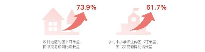▲2022年,來自農(nóng)村地區(qū)的圖書訂單量、圖書交易額持續(xù)增長(zhǎng)