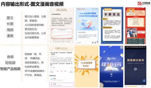 4、由于行方對其資訊內(nèi)容的質(zhì)量和更新頻率都有很高的要求,因此BETA運(yùn)用強(qiáng)大的原創(chuàng)陪伴服務(wù)內(nèi)容體系及龐大的內(nèi)容工廠,通過7大維度、48個(gè)大類場景,208個(gè)細(xì)類場景,實(shí)現(xiàn)客戶業(yè)務(wù)旅程全覆蓋,結(jié)合AIGC營銷內(nèi)容生產(chǎn)工具,為針對不同目標(biāo)客群共計(jì)提供了504篇投教專題文章,以豐富行內(nèi)的投教課程內(nèi)容,使得理財(cái)經(jīng)理能夠更加熟練地服務(wù)客戶。