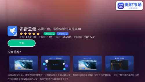 美家市場用戶下載安裝迅雷云盤TV版,可享會員福利