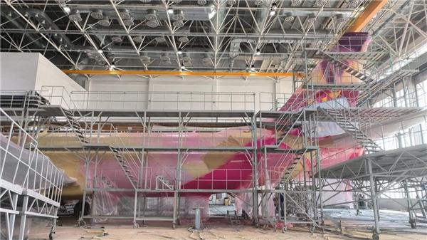 在山東日照,中國聯(lián)合航空創(chuàng)意版標(biāo)準(zhǔn)機(jī)進(jìn)行了褪漆、打磨、清洗、噴繪等各環(huán)節(jié),離其向世界驚艷亮相的日子越來越近了。