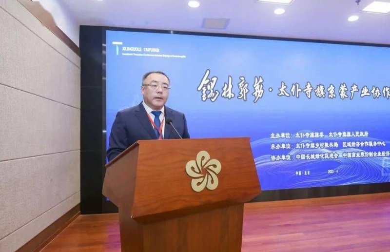 為進一步深化京蒙對口幫扶合作,搭建京蒙合作交流平臺,促進產業(yè)結構轉型升級,推動太仆寺旗加快發(fā)展,4月22日,錫林郭勒—太仆寺旗京蒙產業(yè)協(xié)作招商推介會在京成功舉辦。太仆寺旗委書記趙飛鵬,農業(yè)農村部農村經濟研究中心研究員、改革試驗與政策評價研究室主任王莉,國家發(fā)改委農經司原巡視員、中國長城綠化促進會常務副會長胡恒洋分別致辭,旗委副書記、政府旗長陳艷豹在會上作了招商引資推介發(fā)言。