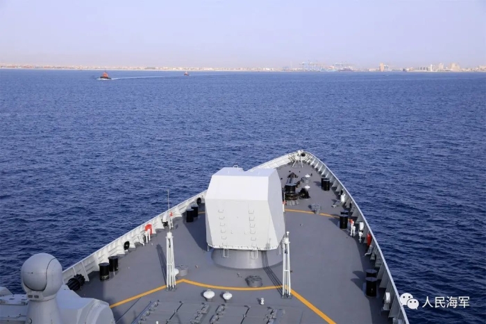 ↑當(dāng)?shù)貢r(shí)間4月26日,海軍軍艦赴蘇丹緊急撤離我在蘇丹人員。李怡諾 攝