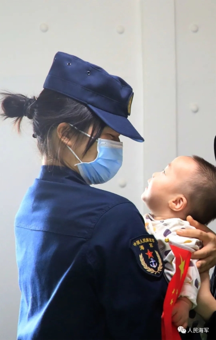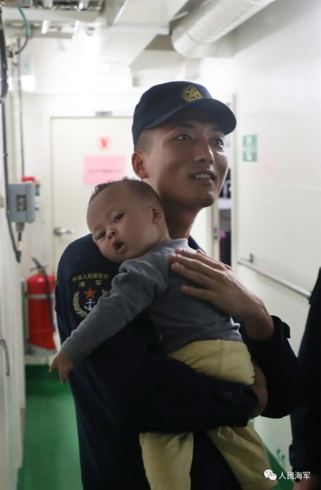 ↑當(dāng)?shù)貢r(shí)間4月26日,海軍軍艦赴蘇丹緊急撤離我在蘇丹人員。圖為海軍官兵照顧登艦幼兒。劉姝含 攝