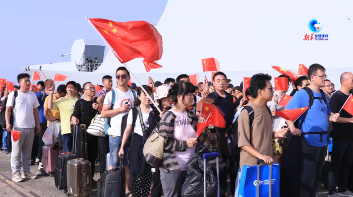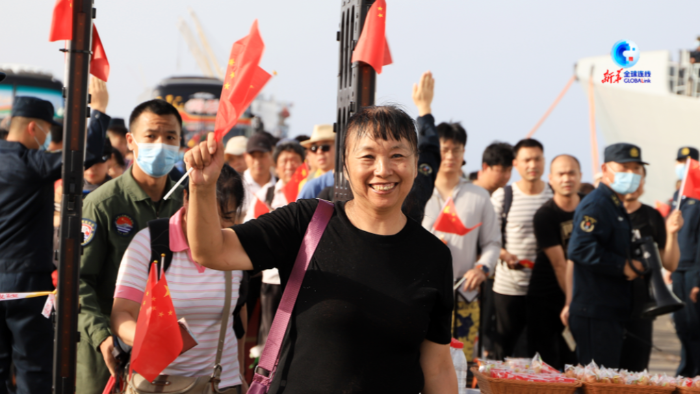 撤離蘇丹人員在吉達(dá)港接受新華社記者采訪時說:“感謝祖國,祖國永遠(yuǎn)是我們堅強(qiáng)的后盾?!?/p>