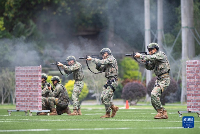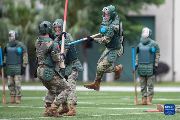 4月30日,中國(guó)人民解放軍駐澳門(mén)部隊(duì)官兵在第十七次軍營(yíng)開(kāi)放活動(dòng)上進(jìn)行戰(zhàn)斗班綜合技能競(jìng)賽。新華社記者 張金加 攝