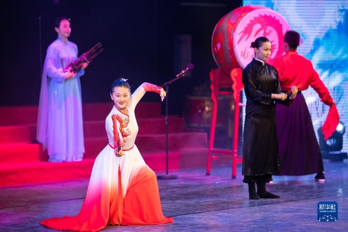 4月30日,中國(guó)人民解放軍駐澳門(mén)部隊(duì)官兵在《愛(ài)在澳門(mén)》文藝演出上表演。新華社記者 張金加 攝