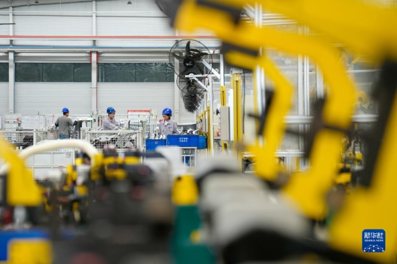 5月4日,在浙江省湖州市長(zhǎng)興經(jīng)濟(jì)技術(shù)開(kāi)發(fā)區(qū)一家汽車(chē)部件有限公司,工人生產(chǎn)新能源汽車(chē)配件。