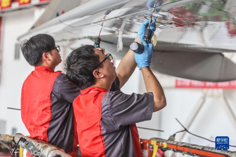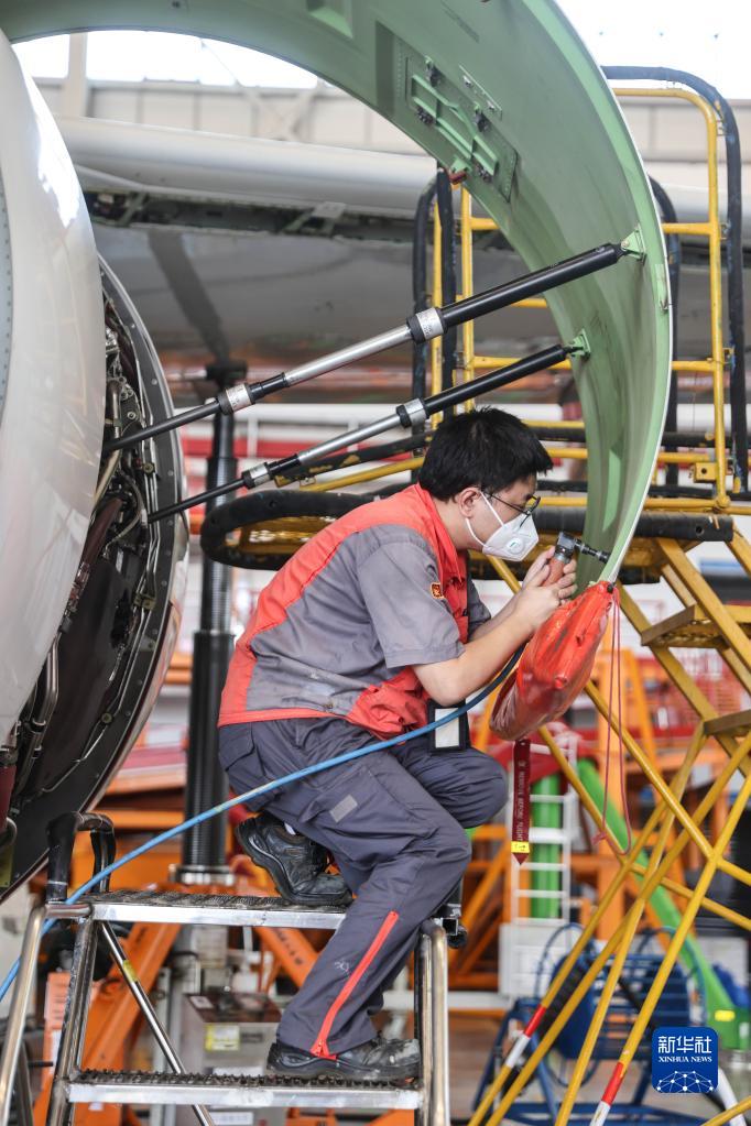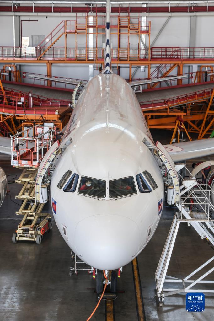 5月5日,海航技術(shù)旗下大新華飛機維修服務有限公司的機務維修人員對進境飛機進行檢修。