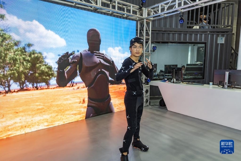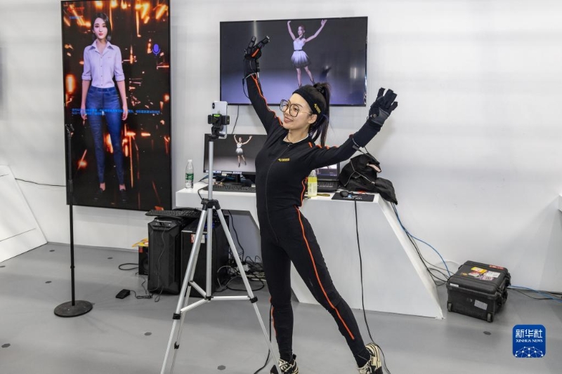 5月5日,在中國影視科技創(chuàng)新成果展上,參展企業(yè)展示光學動捕技術(shù)。