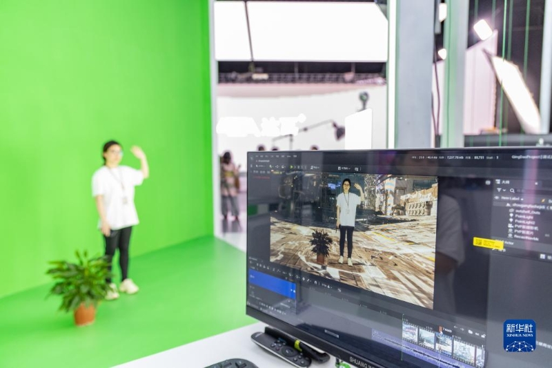 5月5日,在中國影視科技創(chuàng)新成果展上,參展企業(yè)展示感知虛擬制作技術(shù)。