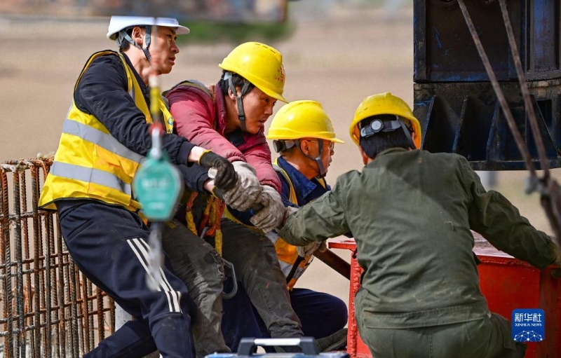 5月5日,建設(shè)者在包銀高鐵跨萬(wàn)甘鐵路特大橋箱梁架設(shè)施工現(xiàn)場(chǎng)作業(yè)。