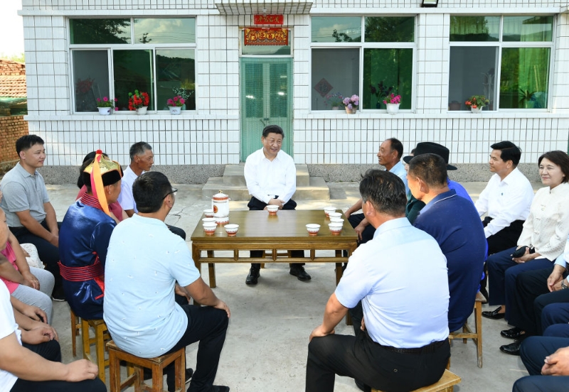 2019年7月15日至16日,習近平在內(nèi)蒙古考察并指導開展“不忘初心、牢記使命”主題教育。這是15日下午,習近平在赤峰市喀喇沁旗河南街道馬鞍山村村民張國利家,同基層干部群眾代表座談交流。