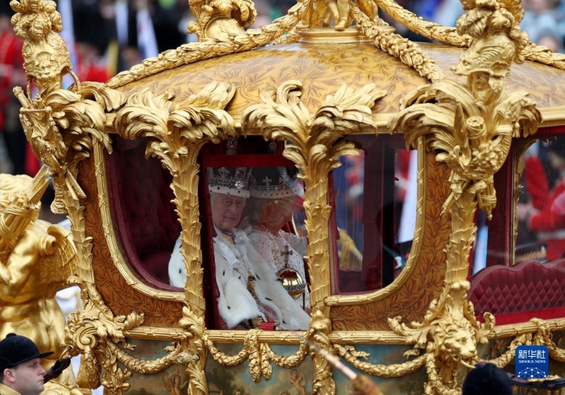 5月6日,在英國倫敦,英國國王查爾斯三世和王后卡米拉乘馬車從威斯敏斯特教堂返回白金漢宮。