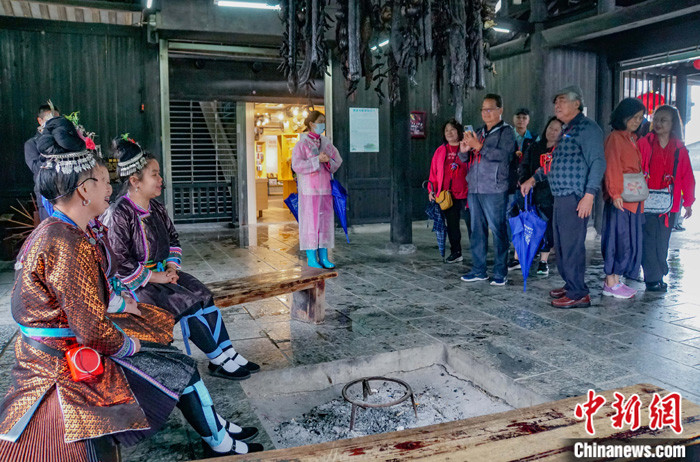 5月7日,臺(tái)灣花蓮縣客家鄉(xiāng)村振興農(nóng)商交流參訪(fǎng)團(tuán)在桂林陽(yáng)朔山水旅游開(kāi)發(fā)有限公司(又稱(chēng)世外桃源景區(qū))欣賞侗族大歌。 中新社發(fā) 蔣豐慧 攝