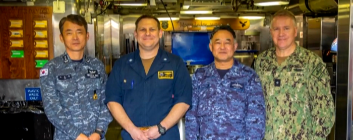 美海軍第七艦隊4日發(fā)布消息稱,美日韓三國潛艇部隊指揮官4月中旬曾一起前往關(guān)島海軍基地,登上“緬因”號潛艇并出海。