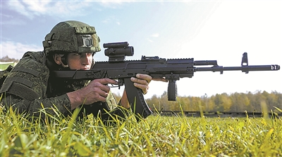 俄軍士兵手持AK-12突擊步槍參加軍事演習(xí)。
