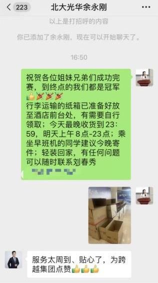 “我是第七次來到戈壁參賽,已經(jīng)是一個老戈友了,我身后堆積滿滿的行李,都是跨越速運幫我們運輸,解決了我們非常大的痛點,我再也不用拖著這么大的行李上飛機了!”北大匯豐商學院的李世焜老師,在談及跨越服務的感受時說道:“昨天晚上我們小伙伴們快遞的駝包,可能今天下午就已經(jīng)到家了,跨越速運棒棒的!”