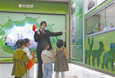 近日,福建省廈門市同安區(qū)人民法院發(fā)揮生態(tài)法治宣教基地平臺優(yōu)勢,開展法庭開放日活動。在同安區(qū)法院生態(tài)館內(nèi),法院干警為小朋友們講解福建省首例跨境涉大白鯊制品的危害珍貴、瀕危野生動物罪案,寓教于樂,寓學(xué)于樂,通過面對面互動、沉浸式體驗,在小朋友心中種下法治種子。圖為干警與小朋友互動場景。