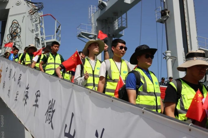 “抵達(dá)港口區(qū)域,只見(jiàn)巨大的軍艦矗立,懸掛著的五星紅旗迎風(fēng)飄揚(yáng),船舷亮出‘接大家回家’的醒目標(biāo)語(yǔ)。在場(chǎng)幾乎所有同胞眼淚一下子就流了出來(lái),人群不停高呼‘祖國(guó)萬(wàn)歲’‘感謝祖國(guó)’。幾百名同胞齊聲歌唱國(guó)歌,現(xiàn)場(chǎng)歌聲久久回響。”岳遠(yuǎn)志激動(dòng)地說(shuō)。