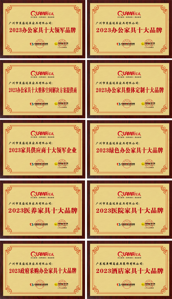 冠美家具集團(tuán)堅(jiān)守工匠精神,追求卓越的辦公空間,在“2023第十三屆家具招標(biāo)采購(gòu)評(píng)價(jià)推介活動(dòng)”中獲得“2023家具供應(yīng)商十大領(lǐng)軍企業(yè)、2023綠色辦公家具十大品牌、2023辦公家具十大整體空間解決方案提供商、2023辦公家具十大領(lǐng)軍品牌、2023辦公家具十大品牌、2023政府采購(gòu)辦公家具十大品牌、2023辦公家具整體定制十大品牌、2023醫(yī)院家具十大品牌、2023醫(yī)養(yǎng)家具十大品牌、2023酒店家具十大品牌”等十大行業(yè)獎(jiǎng)項(xiàng)。此次入選,是對(duì)公司創(chuàng)新開發(fā)能力、空間解決能力、全方位服務(wù)能力、社會(huì)信譽(yù)等投標(biāo)實(shí)力的高度認(rèn)可。