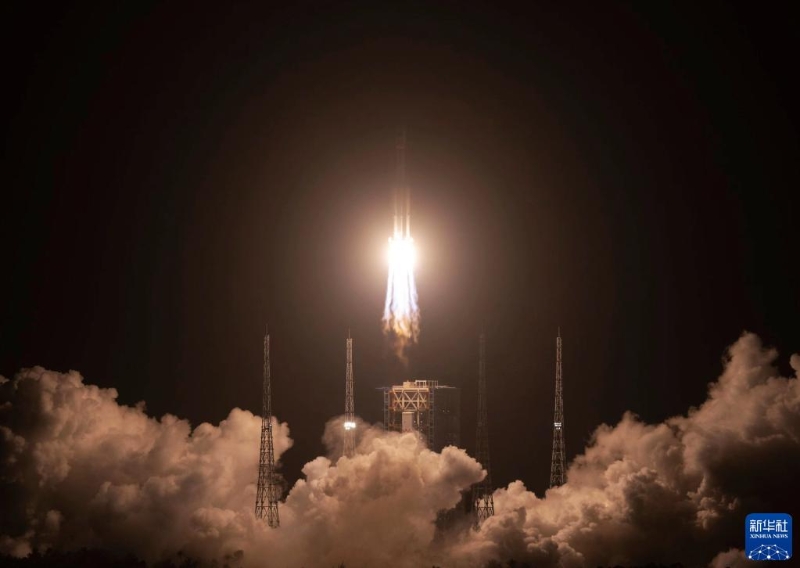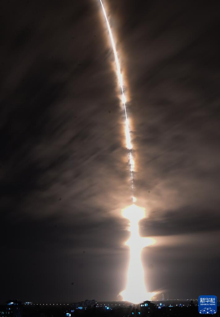 5月10日,搭載天舟六號貨運飛船的長征七號遙七運載火箭,在我國文昌航天發(fā)射場點火。新華社記者 金立旺 攝