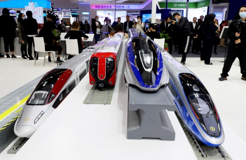 中國中車的展臺展出高速磁浮交通系統(tǒng)、高鐵和地鐵模型。新華社記者方喆 攝