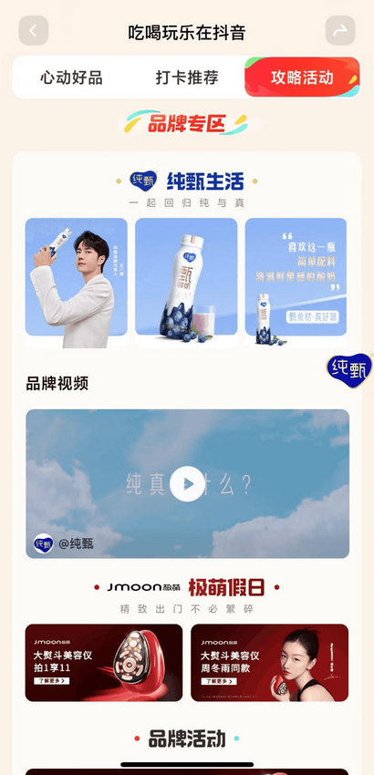 隨著消費(fèi)水平的不斷提升,對(duì)更好生活品質(zhì)的追求已經(jīng)成為消費(fèi)者關(guān)注的重點(diǎn),純甄希望從消費(fèi)者的需求出發(fā),讓簡(jiǎn)單配料,喝出滿滿鮮果感的純甄甄酸奶,常伴消費(fèi)者的日常,滿足消費(fèi)者對(duì)簡(jiǎn)單與真實(shí)生活的追求,回歸純與真。而這也與抖音生活服務(wù)「心動(dòng)五一」活動(dòng)希望喚醒用戶吃喝玩樂的需求,享受心動(dòng)品質(zhì)生活的初衷不謀而合。