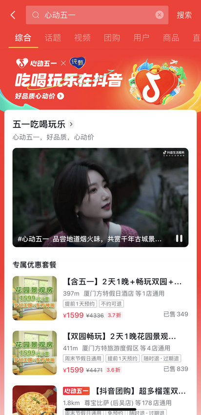 作為抖音生活服務(wù)推出的平臺(tái)級(jí)線上+線下大事件,「心動(dòng)五一」覆蓋餐飲、酒旅、綜合三大行業(yè),攜手平臺(tái)海量商家,開啟連續(xù)多日的五一大促線上專場(chǎng),并通過短視頻、直播等形式種草用戶,在接連8天的直播專場(chǎng)中,眾多不同領(lǐng)域達(dá)人和商家踴躍參與,為消費(fèi)者帶來愉快的假日吃喝玩樂體驗(yàn),線下則以「心動(dòng)五一嘉年華」作為收官,為消費(fèi)者帶來一場(chǎng)精彩的心動(dòng)之旅。