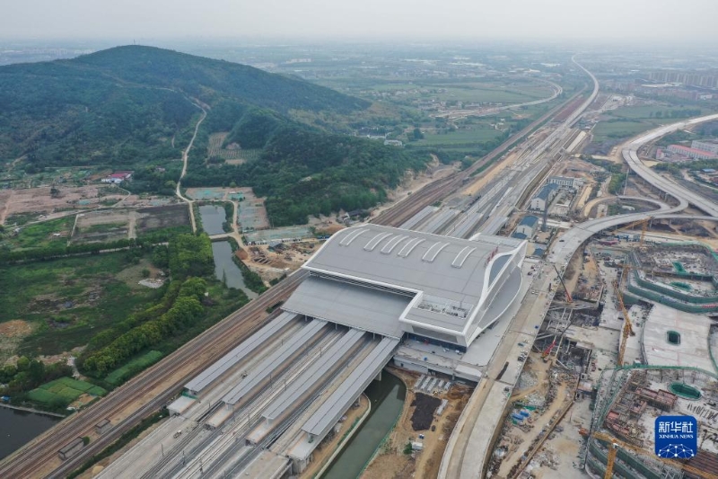 這是滬寧沿江高速鐵路江陰站站房(4月28日攝,無(wú)人機(jī)照片)。新華社記者 季春鵬 攝