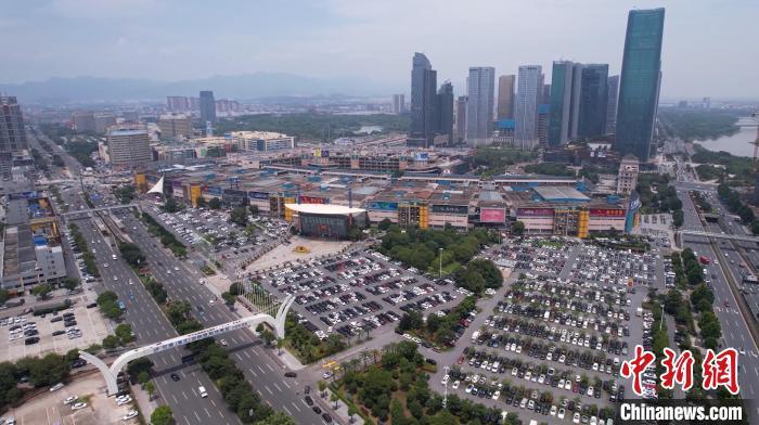 義烏國際商貿(mào)城停車場車位接近飽和(無人機照片)?!《做?攝