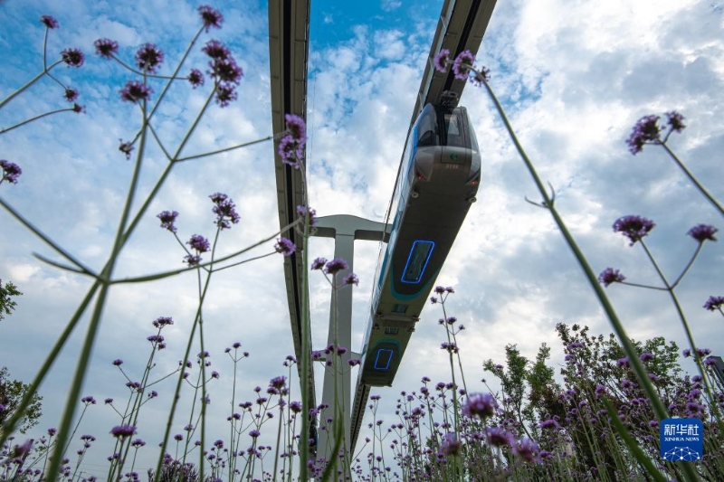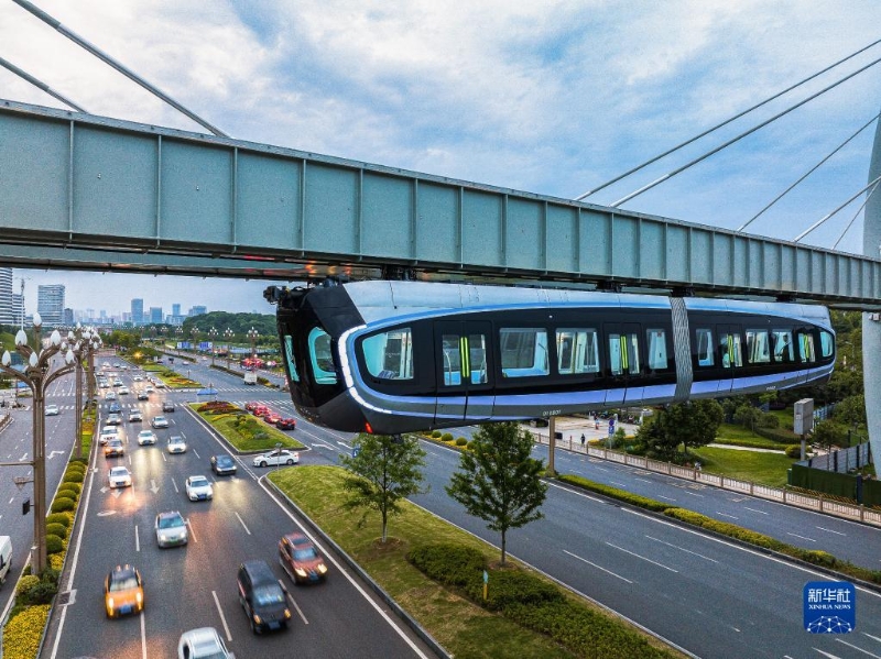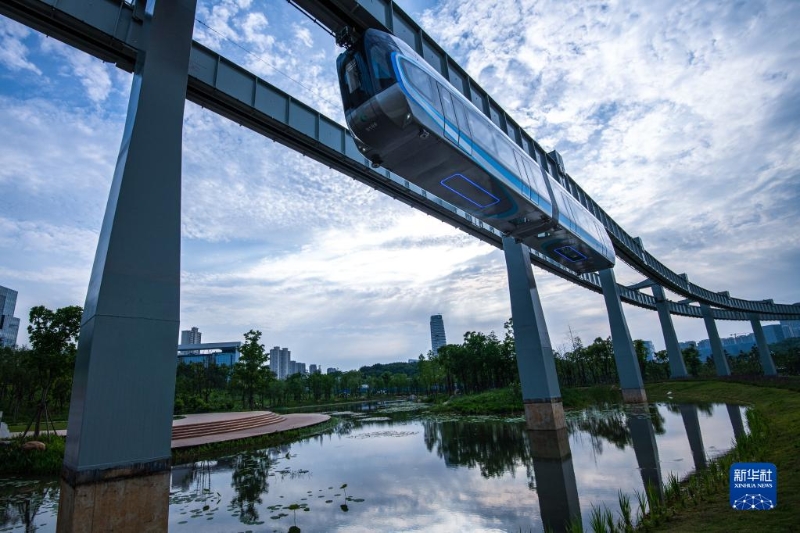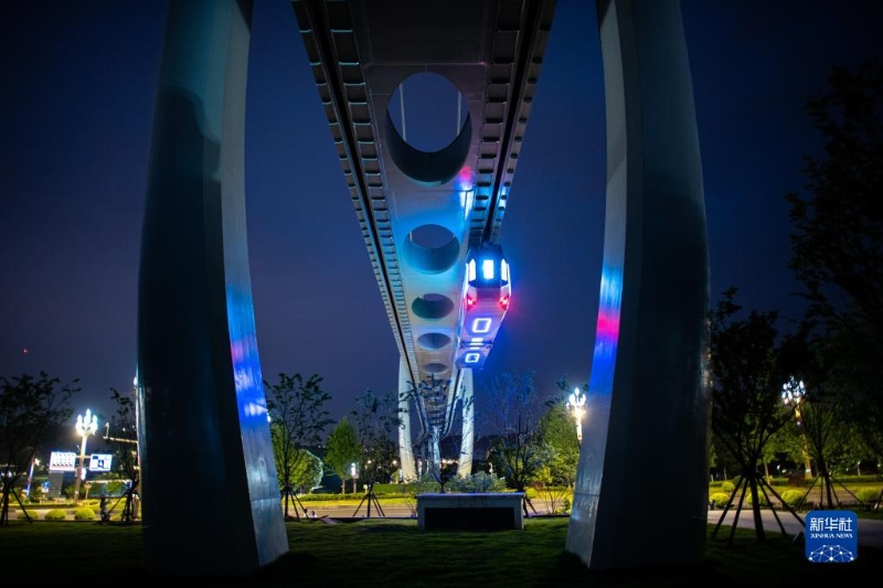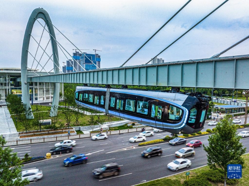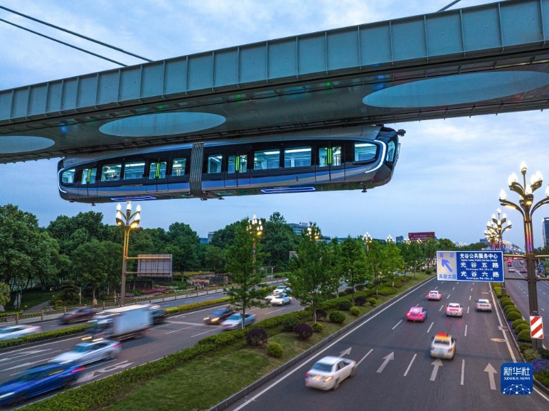 5月9日拍攝的武漢“光谷光子號”空軌列車。新華社記者 肖藝九 攝